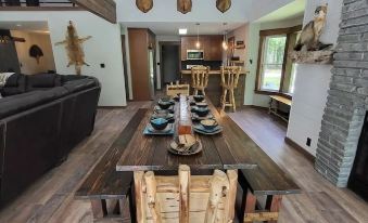 Relax, gather, and want for nothing in this spacious, designer Adirondack modern on almost 3 fenced acres. Amenities are everywhere you look in this huge, private, absolutely loaded property. Enjoy all the things you can't at home: For summer - A pool in a massive fence in yard, custom fire pit, outdoor games and playground for kids. For winter/rainy days - INDOOR hot tub, fireplace, close enough to WALK to West Mountain Ski Lodge, basement game room + arcade, ROKU, board games, & DVD's.
