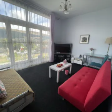 Accommodation as described, beautifully kept up with large bathroom and nice living area that opens to a patio overlooking Queenstown across the water. Do a car for access. Most pleasant, personable hosts. Would visit again.