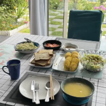 A very satisfying stay experience! The host was very nice and entertained us warmly. He talked about local customs and travel recommendations, and even took us to visit his fruit and vegetable garden, just like we were guests at a friend's house♥️ The house was clean and tidy, with complete supplies and a well-kept small garden, where we could sit Looking at the beautiful scenery on the other side from the balcony, it is comfortable and comfortable💐 Five-star recommendation🌟