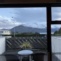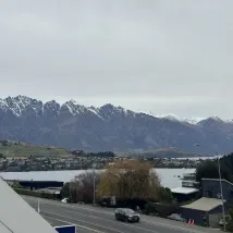 The hotel is a bit old, and the facilities aren't very new. On the plus side, it offers free parking. It's about a 15-minute walk from the city center. We stayed in a spacious duplex apartment, and our room offered beautiful views of Lake Wakatipu and the snow-capped mountains.
