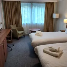 A great Hotel, stayed for 3 nights while visiting family. Great location, 1 minute from M6 junction, with free parking, took a dip in the pool, Spa and Steam room after a long day. 2 minute drive down the road is a McDonalds to keep kids happy and next door to McDonald s is a car park for EV charging for anyone with an Electric car, this is partly the reason for booking holiday Inn as needed to charge the car, Holiday Inn do have a restaurant and bar, quite pricey so used this once in our stay, but it’s a well stocked bar and pretty good menu. Breakfast was plenty, lots to choose from, playground outside for the children and a small play area in the lounge part of the bar, I do believe they also cater for dogs as saw a few during the stay and the reception had a treat jar.