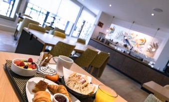 Excellent hotel on the edge of Quimper. It was a little difficult to find at first even with Google maps. Reception staff were really friendly and especially helpful when we explained that we hadn't booked breakfast as my partner is gluten intolerant.. they assured us that there would be gluten free bread available for him and there was! We had an enormous room which was impeccably clean and well laid out. Parking was free and safe. It's a short 10/15 minute walk along the river into Quimper where there are many restaurants and bars but there are also a couple of excellent restaurants with a few steps of the hotel if you don't fancy the walk. All in all this was a lovely stay during our tour of beautiful Brittany and we would stay here again when in the area.