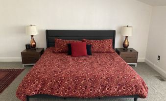 Ground floor guests each have their own bedroom with queen bed, as well as private access to the patio, easy access to the W/D, and a full bath. Guest bedrooms have 45" TVs with streaming Roku access. Each bedroom has its own closet with 2 drawer storage, shelf and clothes bar.