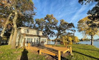 Outdoor Space: Step outside to discover a fire pit, swim pier, and a variety of watercraft for adventure seekers. Enjoy the tranquility of the neighboring island, a haven for birds and turtles, all from the comfort of this historic lakeside retreat.