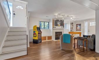 Recently updated spacious home in a safe neighborhood just outside of Washington DC. Home features 4 bedrooms & an office/den with a futon, fireplace, fenced-in yard with large deck area with cornhole, gas/charcoal grills, gaming area with Pac-Man Arcade & foosball, board games, retro gaming emulator with over 30,000 retro games, & pull-out couch downstairs to accommodate up to 12 guests. Roku TVs in all the bedrooms to log into your favorite streaming services on 500Mb WiFi connection with an extender for accessing WiFi outside. Drive or take a short Uber 3.2 miles to Twinbrook metro station for easy access to all Washington DC attractions. About pets:Pets allowed: dogs (limit 1 total).About checkOut:Check out before 10:00 AM.About children:Children allowed: ages 0-17.About checkIn:Check in after 4:00 PM.About smoking:Smoking is not permitted.About minBookingAge:Minimum age to rent: 25.About events:No events allowed.