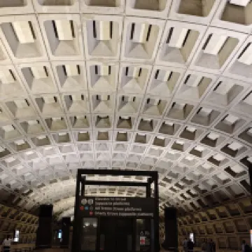 The room was spacious and had two sinks, which was very convenient. However, the window faced the hallway, making ventilation difficult, which was inconvenient. There was a Dunkin' Donuts and a grocery store near the hotel, which was great for shopping. The subway station was also nearby, making it easy to get to Washington, D.C.
