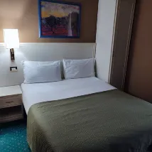 Located in a fairly squalid peripheral area, the hotel is absolutely not a 4... it could barely be a 3 star. Hotel stuck in the 70s. Carpet in the room, quite shabby, as well as impregnated with a bad smell of mold and smoke. There was no heating with 5° outside. Then I noticed the air conditioning which also had a heat pump... too bad that the split was right above the bed and the jet straight in the face. Unusable. I found some blankets in the closet but with stains of dubious origin. These were also unusable, I spent a night in the cold with also an annoying buzzing incessantly coming from the electrical panel. A nightmare night, I didn't sleep a wink. I couldn't wait for morning to come so I could escape, I didn't even want to have breakfast. Not recommended.