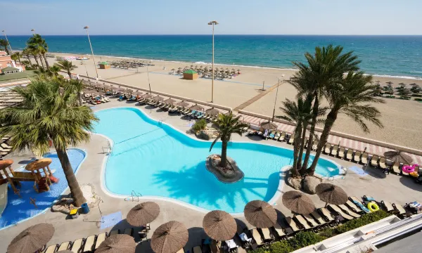 After saving and booking our Easyjet holiday, how disappointed were we on arrival, which didn't improve through the week. On arrival before midday we were met with a pleasant man at reception, clearly dealing with alot of customers, after a 40 minute wait we checked in then to be told we couldn't access the room until 3pm. The hotel is very tired and needs a massive update, the food is very repetitive and very biased towards the Spanish customers, we were the only English family that we are aware of. Almost all the customers were elderly Spanish people, which is fine but we booked a family resort. The buffet style restaurant did not cater towards kids in the slightest and we ended up eating out 3 nights even though we were all inclusive. There was one small child pool for younger children, which 2 days the water features weren't even turned on! The children's disco didn't start until 10pm even though it stated earlier which was too late for our young ones. Limited drinks on the AI package and you have to pay a deposit for your cup. Deposit needs paying for towels too. You have to pay daily for the room safe which in our opinion is a joke. All the entertainment poolside is announced in Spanish only. Our room was ok, the bed was very 'used' and dipped in the middle, the cots seems pretty new. The toilet seat wasn't attached and kept moving, the sliding door runner to the balcony was damaged and had very sharp edges which was a concern, luckily none of us caught our feet on it. If you have a pram on any higher then the first floor asked to be changed, the que and wait for the lifts was a joke and they were small, all the elder customers were obviously only using the 3 lifts which one was out of order. There is probably plenty more but it is safe to say we would never return to this hotel, this is the first time i have ever left a review on a hotel and its a shame it was like this.