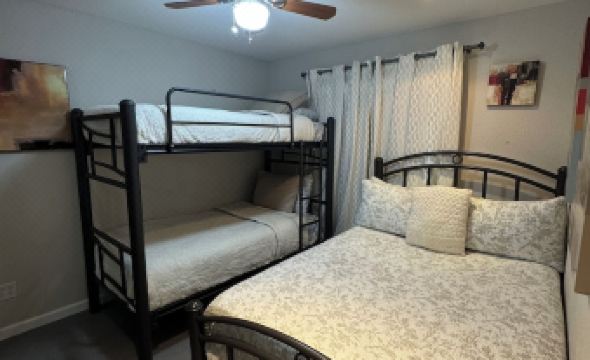 2 bedrooms: 1 single bed 1 king bed and 1 double bed