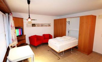 Studio located in quiet and sunny area, consisting of 1 bed-sitting room with murphy beds, kitchen without oven, 1 bath/WC and north-facing balcony with amazing mountain view. Free wifi is available. Only 10 walking minutes to the centre & ski station. In winter there is a bus station just in front of the house. The bus passes every 20 minutes a drives stops outside the cable car station.