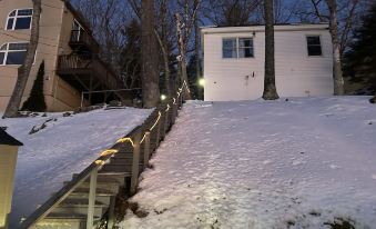 House was as described and had everything needed for a weekend visit. Practically on the water, central to many things, and not far from the interstate. Would consider staying longer next summer. The long stairway from the road to the house needs maintenance (uneven planks, screws exposed). Parking for a large SUV and a pick 'em up was tight but doable. Dock on the lake was nice, but we didn't have time to enjoy it. Didn't do any cooking there or use the backyard, firepit, or grill. Upstairs loft/bedroom well-suited to young, nimble people.