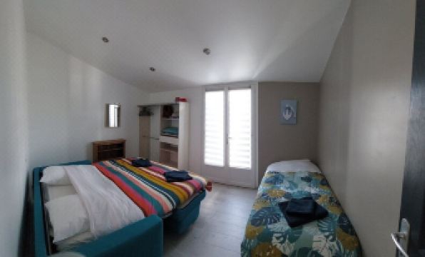 - Two bedrooms each with a bed of 160*200, and a room with a sofa bed Rapido system of 160*200 and a bed of 90*190. All the beddings are recent and of quality.