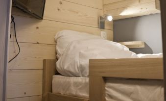 - Cabin separated from the living room by a door with 2 bunk beds 80x190 with cupboard + TV