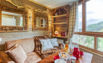 The area of Preyrand is linked to the centre "La Croisette" by a free lift, open from 0830 hrs to 2300 hrs. residence "Belleville Caron", 14 storeys. In the district of Preyerand, 250 m from the centre, directly by the skiing area. In the complex: lift, storage room for skis. Public parking on the road. Grocery, supermarket 20 m, shopping centre 250 m, restaurant 50 m, bus stop "Gare routière Les Menuires" 500 m, indoor swimming pool 100 m. Sports centre 100 m, skisport facilities 60 m, slopes 20 m, ski school 250 m, cross country ski track 50 m. Please note: the photograph shows a typical example. Additional accommodations can be booked. "Belleville Caron 1 - 1419", 1-room apartment 14 m2 on 14th floor. Renovated, very beautiful and wooden furniture furnishings: living/dining room with 1 double sofabed (140 cm, length 190 cm), TV (flat screen). Kitchenette (2 induction hot plates, toaster, kettle, microwave, electric coffee machine, Capsules for coffee machine (Nespressso) extra, raclette grill). Shower/WC. Heating. Beautiful view of the valley. Facilities: Internet (WiFi, extra). Please note: non-smokers only. Smoke alarm. 73257004903DP
