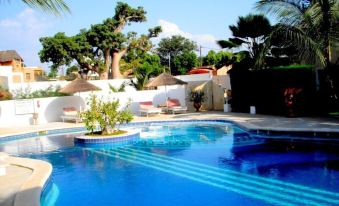 Villa 2 bedrooms 110m2 air-conditioned in a small luxury residence (4 villas) 'Les Cases de Saly Senegal'. Located 200 meters from the center and 300m from the beach, do not need to take the taxi to go to the center of Saly. The villa Bougainvillier with thatched roof has three bedrooms with toilet and private bathroom, living room, dining, kitchen and toilet. Outside large terrace with table and chairs, cocktail corner with sofa and coffee table, exotic garden with direct access to a beautiful 18x11 free-form swimming pool and umbrella.About pets:No pets allowed.About checkOut:Check out before 11:00 AM.About children:Children allowed: ages 0-17.About checkIn:Check in after 4:00 PM.About smoking:Smoking is not permitted.About events:No events allowed.