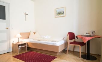 Experience an abundance of unparalleled facilities and features at Gästehaus im Priesterseminar Salzburg. Maintain seamless communication using the complimentary Wi-Fi at hotel.Guests can avail parking facilities at the hotel. Reception assistance is offered at the hotel featuring luggage storage.In search of city's top entertainment, seek assistance at the hotel's ticket service and tours for reservations. During leisurely days and evenings, on-site amenities such as room service enable you to fully enjoy your accommodation.For visitors wishing to smoke, designated smoking zones can be found.At Gästehaus im Priesterseminar Salzburg, every guestroom is provided with convenient amenities and fittings to ensure a comfortable stay.Elevate your experience at hotel with the knowledge that certain rooms are equipped with linen service, ensuring a more pleasant stay for you. In select rooms at the hotel, a coffee or tea maker is available for those moments when it seems necessary. In the hotel, certain guest bathrooms come equipped with essential bathroom amenities, such as a hair dryer and toiletries, ensuring a comfortable stay for guests. Begin your day with a scrumptious on-site breakfast available each morning at Gästehaus im Priesterseminar Salzburg. At Gästehaus im Priesterseminar Salzburg, guests can access vending machines that provide light snacks and beverages 24 hours a day. At the hotel, discerning guests can also enjoy on-site culinary facilities like shared kitchen tailored to their preferences.