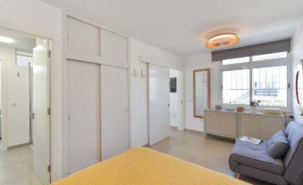Cosy, comfortable apartment block "La Maresia CB9A". In the centre of San Agustin, in a central, busy position, 50 m from the sea, 50 m from the beach. Private: terrace, barbecue, public parking on the road. Shop, grocery, supermarket, restaurant 200 m, bus stop "San Agustín" 750 m. The owner does not accept any youth groups. Please note: airfield 40 km from the property. Neighbourhood highly sensitive to noise. Quietness and good behaviour expected. 2-room apartment 60 m2. Comfortable and modern furnishings: living/dining room with dining table and digital TV. Exit to the terrace. 1 room with 1 french bed. Open kitchen (dishwasher, toaster, kettle, microwave, freezer, electric coffee machine). Shower/WC. Terrace. Terrace furniture, barbecue, deck chairs. View of the sea, the resort and the forest. Facilities: washing machine, safe, iron, children's high chair, baby cot for up to 2 year olds, hair dryer. Internet (WiFi, free). Please note: non-smokers only. 2022-T14602 // Reg. Nr.: ESFCTU0000350120004966730000000000000VV-35-1-00185099
