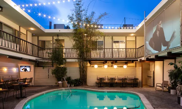Such a cute place, great design absolutely love the vibe. The bar is hopp’n very busy right by the pool giving pool party into the night. They have a big screen above the pool where the bar restaurant faces where they played a movie. Its a small hotel so it was definitely louder than Id prefer for a Wednesday night.