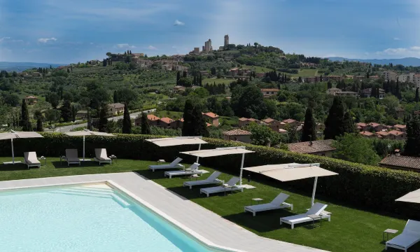 Good walking distance from the historical San Gimignano sites. The room was always clean and the staffs were very friendly. The iconic towers are visible from the hotel pool side.