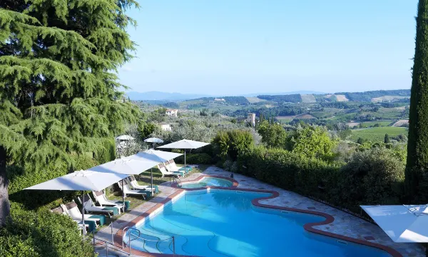 VERY nice and helpful staff! They consistently went out of their way to be helpful. My girlfriend wasn't feeling well, and they let us check in early so she could lay down....the room service lady who brought her some food went out of her way to be sympathetic and kind... The people who work there are top notch! The room and the facility are very nice and clean as well. The only reason I withheld that 5th star is that the hotel isn't inside the old castle walls of San Gimignano. It's down the hill a bit. The walk up the hill isn't bad at all, but there is that walk up the hill (which isn't clear in the listing). But that's a small ding for an otherwise wonderful hotel!