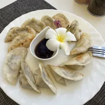 We ate breakfast every morning and one of our dinners in the hotel restaurant and it is very high quality, tasty food. I especially loved the organic spinach and homemade dumplings, as well as the mapo tofu- YUM! The fresh fruit each day was crisp and delicious and I LOVED drinking coconuts by the pool. Thank you, Cherry! Coffee is for purchase at the restaurant, not in the rooms.