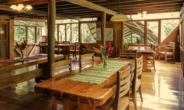 Location & Environment: The property is situated in the cloud forest of Mindo, offering immersive natural surroundings, birdwatching opportunities from balconies and an upper observation deck, and lush gardens with trails.