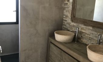 -Two rooms of 12 m2 with double bed and equipped with a dressing. - A bathroom with an Italian shower, double sinks, heated towel rail and a hair dryer.