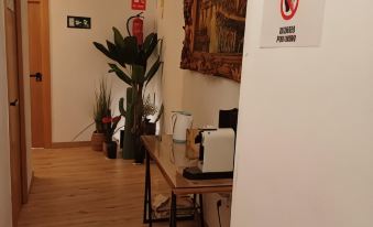 Dispone en el pasillo de máquina de café y hervidor de agua e infusiones varias.