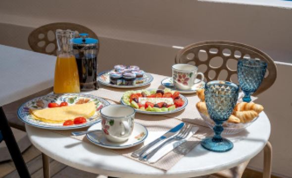 Hotel no meio da rua com os principais restaurantes e lojas. Serviço excelente, acomodação muito confortável e café da manhã maravilhoso na varanda. Definitivamente a melhor experiência que tivemos na Grécia. Obrigada por terem sido tão prestativos comigo e minha família. ❤️👏🏼