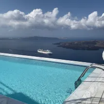 A very good hotel. It is at the top of the cliff walk. It is so beautiful. The service is also very good. The privacy is also very good. I highly recommend this hotel. Although it is not in the town of Oia, it is close to the Fira bus terminal and is right at the Blue Roof. Underneath the church. Because all transportation on the island transfers at the bus station, it is very convenient to live here.