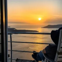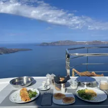 The hotel is in a good location, facing the sea, which is very beautiful. I feel relaxed. I sat on the balcony for breakfast, which was very comfortable and delicious. The hotel is very quiet near the commercial street of Fira, and it is convenient to go out for dinner and shopping.