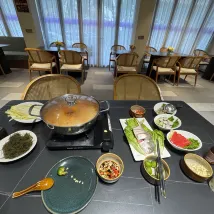Hotel interior: The hotel opened in 24 years and is relatively new overall. The front desk helped me upgrade from a garden-view one-bedroom and one-living room to a high-end business one-bedroom and one-living room. I would like to thank your hotel and the ladies at the front desk. Parking lot, charging pile, swimming pool, gym, self-service 24H laundry room washing machine and dryer are all available. Breakfast, lunch and dinner are provided. Breakfast (emmm... I didn't eat), lunch and dinner only have a few set meals. I left dinner time in the hotel on one day. I ordered the dregs vinegar and mackerel set meal, and the overall experience was satisfactory. The dregs vinegar is spicy (I can't eat anything containing capsaicin, so you can ignore this). The side dishes are slightly fishy except for the white pomfret, and the freshness and taste of all the ingredients are good. The mackerel should be fried and then put in the oven to bake. The fish meat is firm but without any moisture. The freshness is OK but the taste after cooking is not good. The rice is cold, the side dishes and braised eggs are fast food bought from the supermarket, and the side dish of fried lettuce tastes good. Just talking about the mackerel set meal, I must give a bad review. The number of rooms is not large overall, and some are suites. The bathroom exhaust fan is a bit noisy, the lighting design is a bit unreasonable, the top light is too bright, and the front light of the mirror is too dark, so it is a bit unclear to look at the mirror. The room is well soundproofed, but the street-facing room can hear the sound of vehicles passing by at night. The air conditioner cools down in 0 seconds. The bedding is changed about every 3 days, and the room is cleaned in time and very clean.