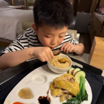 That evening, a family emergency led to my family member being rushed to the hospital by ambulance. I had been out all day, and my child hadn't eaten lunch or dinner. I dragged myself back to the hotel late at night, utterly exhausted both physically and mentally. The first thing I did on the way was contact the customer manager, Chris, asking him to arrange Hainanese chicken rice for me in advance, thoughtfully preparing room service for my child. Upon returning to the room, my weary heart was first soothed by a warm meal.
