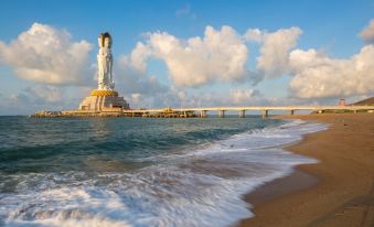 The hotel is located in the Nanshan Cultural Tourism Zone, a 5A-level scenic spot, facing the coast of the South China Sea, perched on top of Nanshan Mountain, and directly facing the majestic 108-meter Guanyin Statue on the Sea.