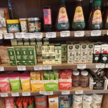 No free bottled water, few restaurants nearby. A five-minute walk to a supermarket.