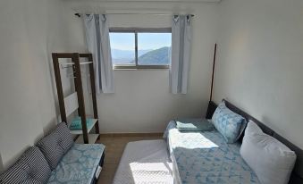2 bedrooms: 2 single beds and 1 queen bed