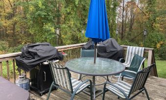 Large deck off the dining room with grill and eating area.About pets:No pets allowed.About checkOut:Check out before 11:00 AM.About children:Children allowed: ages 0-17.About checkIn:Check in after 4:00 PM.About smoking:Smoking is not permitted.About minBookingAge:Minimum age to rent: 21.About events:No events allowed.