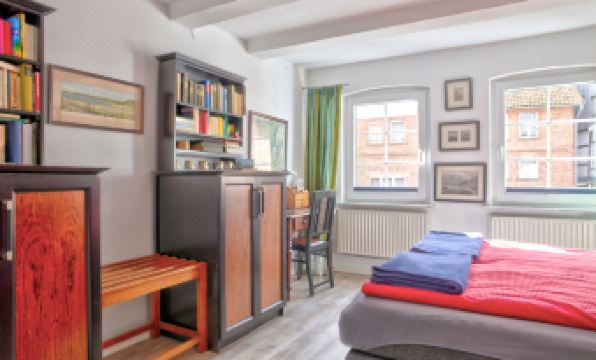 Historical 2-family house, built in 1560. In the centre of Schwalenberg, excellent location: right in the centre but still quiet, in the heart of the city, traffic calmed area, 100 m from the stream. For shared use: natural garden 500 m2, meadow 500 m2, orchard 500 m2, courtyard. Barbecue, public parking on the road. Shop, grocery 4 km, supermarket 5 km, restaurant 200 m, bakery 400 m, café 4 km, bus stop "Steinheimer Strasse" 200 m, railway station "Steinheim" 6 km, outdoor swimming pool 6 km. Walking paths from the house 100 m, children's playground 300 m. Nearby attractions: Externsteine 26 km, Hermannsdenkmal 27 km, Welterbe Corvey 28 km. Well-known lakes can easily be reached: Schiedersee 6 km. Please note: car not advisable. Loading and unloading of baggage is possible at the holiday house. The owner lives in the same residence. Natural garden with grapevines. The owner has his own vineyard and runs a wine trade. In the yard in front of the house there is a paved forecourt (100 m2) with a small public restaurant for tasting wines from mainly German countries. Wine tastings, hikes and singing together can be booked on request and for a fee, as well as an in-house laundry service (washing / drying / ironing). "Phileas", 2-room apartment 46 m2 on 1st floor. Tasteful furnishings: living/dining room 18 m2 with satellite TV (flat screen), CD-player and hi-fi system. 1 room 15 m2 with 1 double bed (180 cm, length 200 cm). Kitchen 9 m2 (oven, dishwasher, 4 ceramic glass hob hotplates, toaster, kettle, electric coffee machine). Shower/WC. Gas heating. Facilities: iron, hair dryer. Internet (WiFi, free). Please note: non-smokers only. Smoke alarm, fire extinguisher. The bookable additional room (16 m2, extra) for 2 people is on the same floor and has 1 double bed (150 cm, length 200 cm), satellite TV (flat screen) and a seat as well as a bathroom / toilet (5 m2). A baby and / or toddler as an additional person is not allowed.