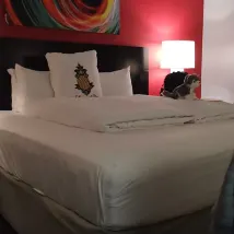 The staff were exceptionally helpful and friendly. The hotel had a whimsical atmosphere with the pineapple theme amenities. We enjoyed the robes and how the bed was set up. All the games in the lobby were fun along with the pineapple water. We wished we had had time to use the bikes. We will be back.