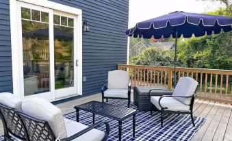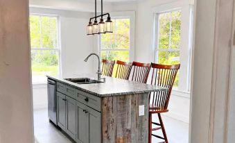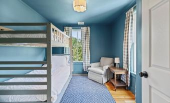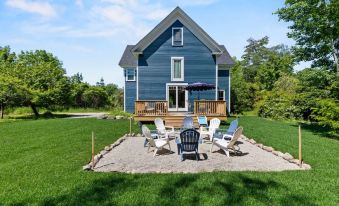 Experience the ultimate family getaway at The Blueberry House. This family-centric haven offers dedicated spaces for all ages. Young kids will adore the playroom, while teens can unwind with books, board games, and a PS4. Enjoy our expansive yard with seasonal lake views, featuring a deck, grill, fire pit, hammock, and games like cornhole and giant Jenga.