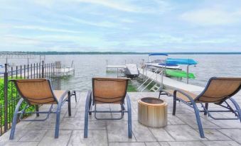 Step outside and you'll find a spacious patio where you can relax and take in the lakefront views. You'll enjoy direct access to a dock for fishing or launching a kayak -- and there's plenty of room for swimming and sunbathing too!