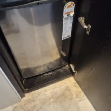 The double bed was another issue. It makes noise every time someone moves, so you tend to disturb each other’s sleep. The bed headboard is resting directly on the mattress, which feels like a safety concern. The coffee and tea station is placed on top of the chiller cabinet with an extension wire, which also doesn’t feel very safe. Amenities like toothbrushes were only provided for two guests, despite it being a four-person room.