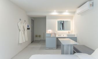 방이 완전 작고 딱 잠만자기 좋은 사이즈였어요! 연박이었는데 별도의 청소나 이런건 없었어요 ㅜㅋ