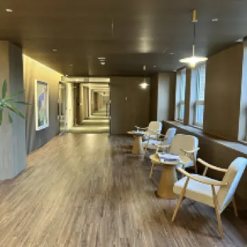 The service was excellent, and the environment was elegant and comfortable. There was a garden and green space in the middle, which made it feel like a small manor. It was very peaceful and relaxing! There was even a walkway next to the room with plenty of chairs for reading, which was very stylish!