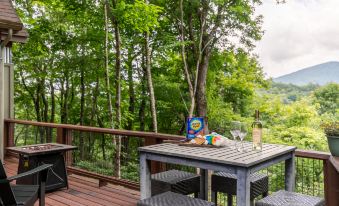 There are just 7 steps from the gravel parking area to walk onto the main level deck and enter the cabin, but every time you come home we bet you won't be able to resist going around the corner to grab a quick peek at Grandfather Mountain in the distance! Kick back on the deck and stargaze, or warm up on a chilly evening with the propane fire table. Take the gravel path from the lower level steps out to the beautiful new firepit at the edge of the yard and have fun telling stories and making s'mores around the bonfire!