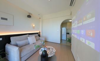 房間乾淨整潔,有洗衣機還有陽台,房間很大,最重要的是有大幕布帶投影,性價比很高,推薦入住