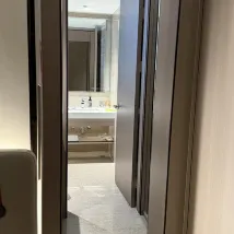 The hotel's location is excellent, with convenient subway access nearby. The staff are very welcoming, and food deliveries can be brought directly to your room by a robot. The room itself is spacious with decent facilities, and the bed and pillows are very comfortable.