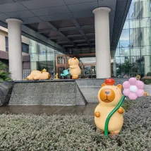 We had a very satisfying stay. Upon entering the lobby, we were greeted by adorable capybara plush toys, which our kids absolutely loved. Check-in at the front desk was smooth and efficient; they even reminded us to book the shuttle bus to Disneyland. Our room was well-equipped, and the extra-large king bed was incredibly comfortable, ensuring a wonderful night's sleep. In the evening, we ordered a lot of takeout, and we simply had to tell the delivery driver to place it in the robot, which then brought it directly to our room door – so convenient! The breakfast restaurant had a pleasant ambiance with plenty of seating. The buffet spread was quite rich and varied, perfectly suiting our tastes, and our whole family left feeling very full and satisfied – it was great! When we were delayed by an unexpected event, the front desk graciously extended our check-out time, which was incredibly thoughtful and accommodating. Highly recommend!