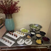 Given its proximity to the airport, the sound of planes taking off was a bit disruptive at times. The happy hour food was delicious, though the variety was a little limited.