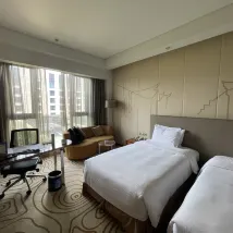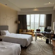 Facilities: The room is well-equipped with a fridge and a safe. The fridge was functional with excellent cooling, a crucial feature for summer guests. The room's power card system allows the air conditioning to remain on even when you're out. Disposable earplugs were provided, a thoughtful touch considering its location near Hongqiao Airport where aircraft noise is inevitable. However, I didn't find the noise to be an issue inside the room. The TV remote control could benefit from a proper, snug-fitting protective cover instead of the ill-fitting plastic bag.